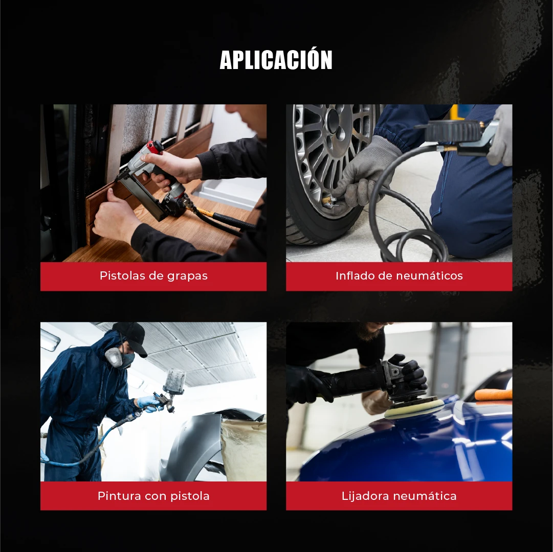 Inflado de llantas, limpieza, uso de pistolas de aire.