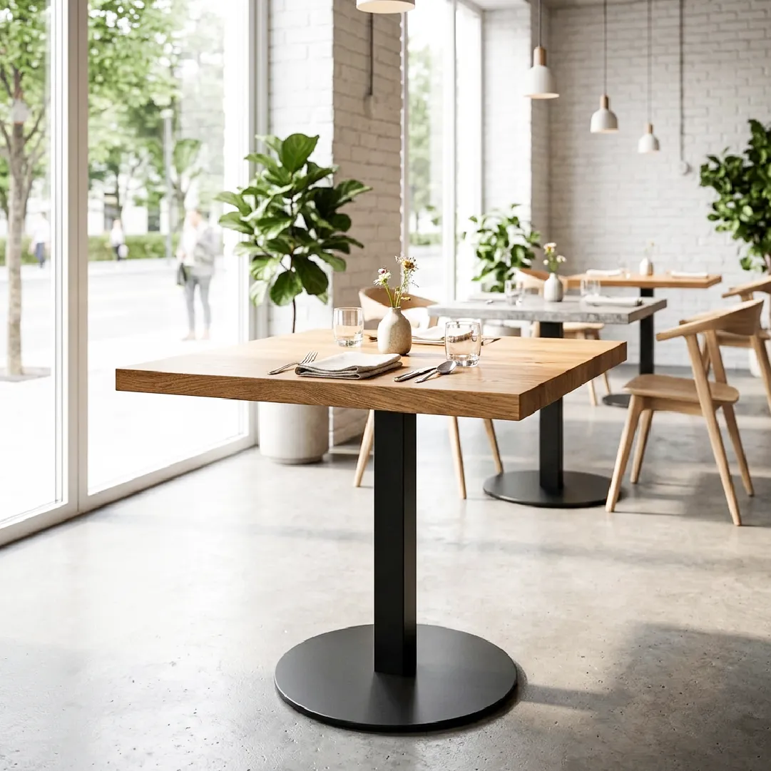 Ideal para mesas de comedor, cafeterías, restaurantes, oficinas y espacios comerciales que requieren una base resistente y de diseño moderno.