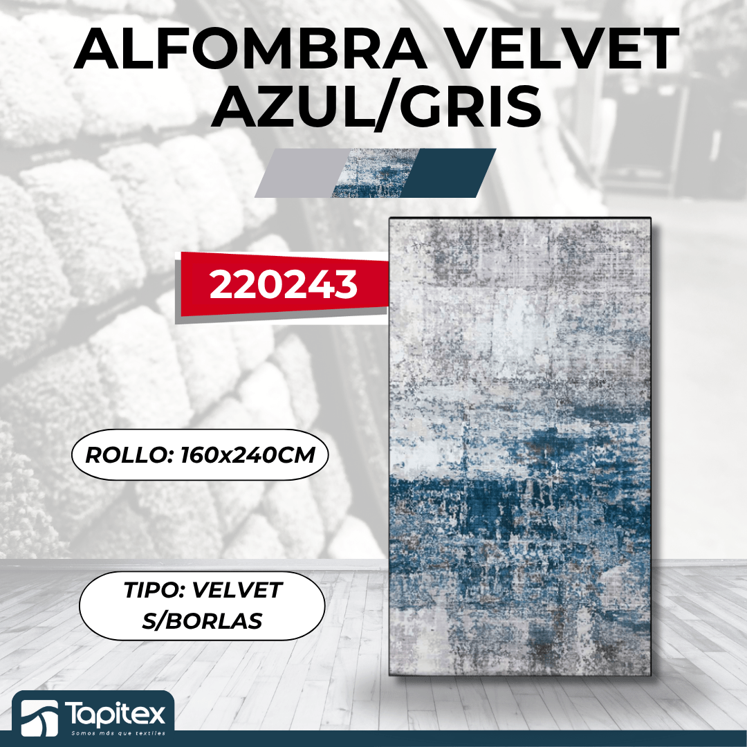 La Alfombra Velvet #5 Azul y Gris fusiona tonos fríos y elegantes para crear un ambiente moderno, equilibrado y relajante. Sus matices azulados combinados con grises neutros la hacen ideal para espacios contemporáneos, escandinavos o ejecutivos. Confeccionada en tejido velvet de alta densidad (900 g/m²), proporciona una textura suave al tacto, resistencia al uso diario y una presencia decorativa refinada. Su diseño sin borlas ofrece un acabado limpio, perfecto para interiores de líneas rectas y ordenadas.