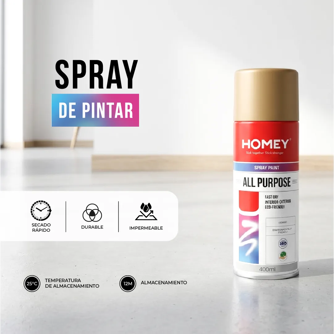 Pintura en aerosol de alta cobertura y secado rápido, formulada para brindar un acabado uniforme, duradero y resistente en superficies metálicas, plásticas, cerámicas y de madera.