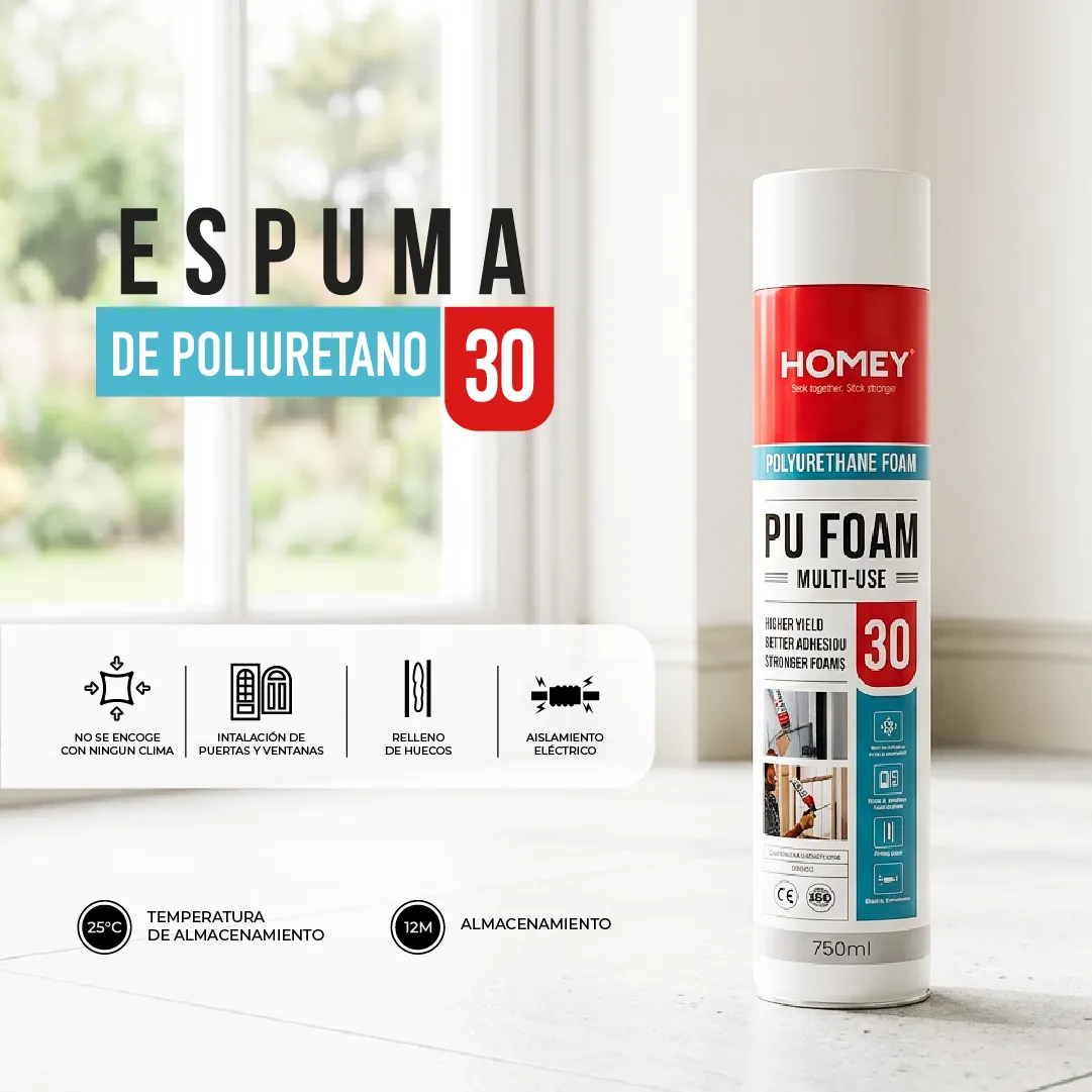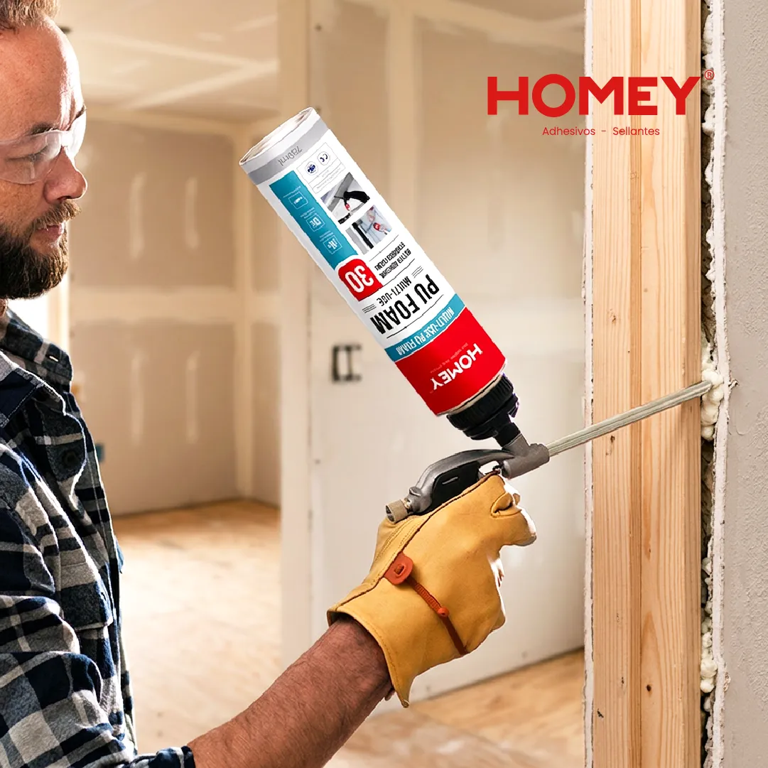 La Homey Multi-Use PU Foam es una espuma expansiva de poliuretano monocomponente, lista para usar y de curado por humedad ambiental. Se aplica mediante adaptador plástico o pistola, ideal para rellenar, sellar y aislar huecos, juntas y cavidades en proyectos de construcción o instalación.