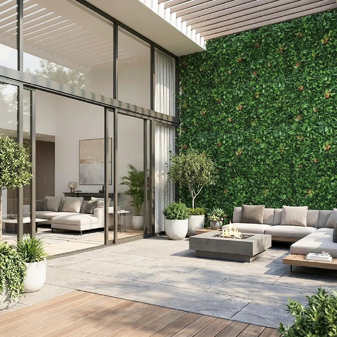 Perfecto para fachadas, terrazas, balcones, patios o interiores que buscan un ambiente verde sin el cuidado de plantas reales.