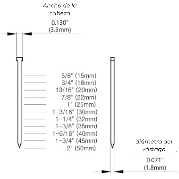 utiza clavo madera T19….T38 ..Clavillo de acero