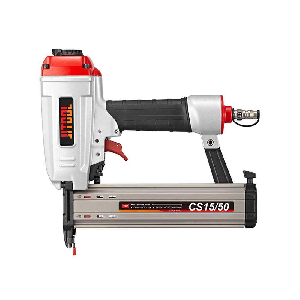 La clavadora neumática CS15/50 está diseñada para insertar clavos en concreto, mampostería y estructuras metálicas livianas. Su tamaño compacto y peso moderado la hacen ideal para acabados de construcción, marcos, zócalos y estructuras interiores en obra.