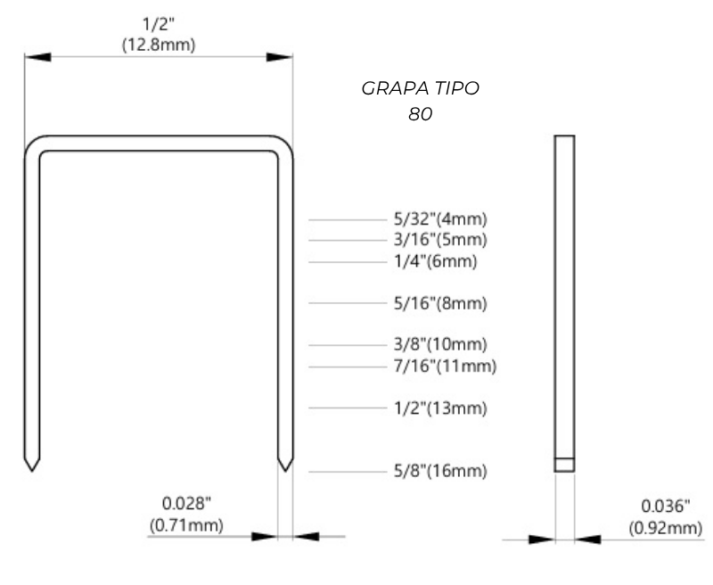 Longitudes recomendadas de la grapa Tipo 80
