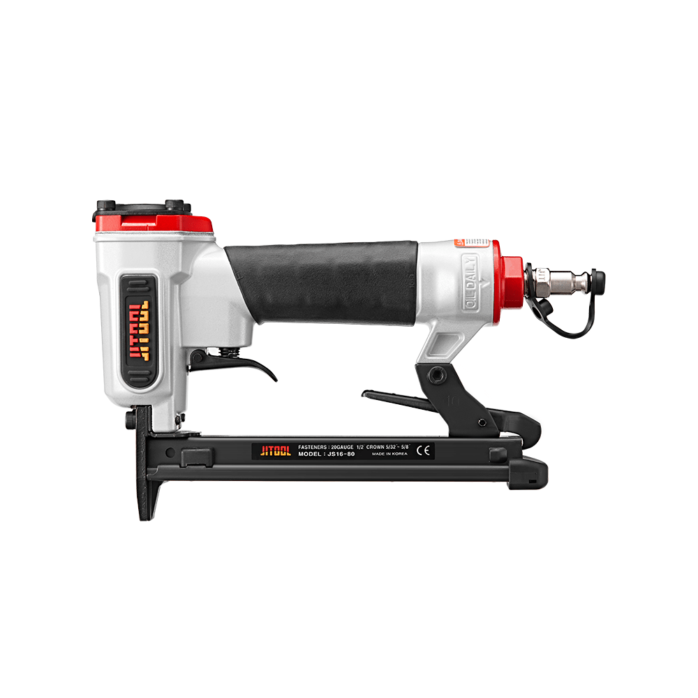 La Grapadora neumática JS16-80 CRT10 20GA es ideal para trabajos de tapicería, muebles, camas, gabinetes y fabricación automotriz. Su diseño ligero y potente permite trabajar de forma continua, precisa y sin fatiga.