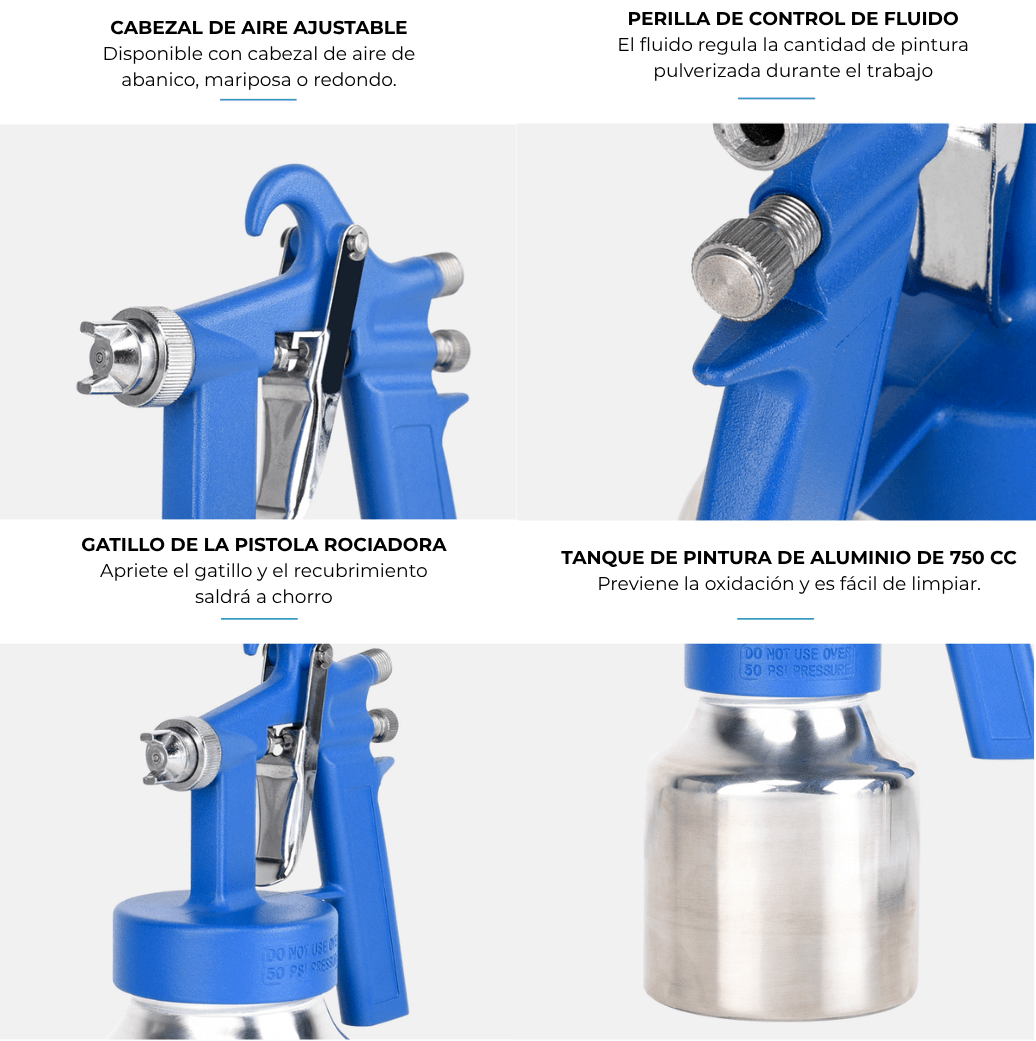 4. Gatillo con dos velocidades: la primera para la limpieza del polvo y la segunda para la pintura.
